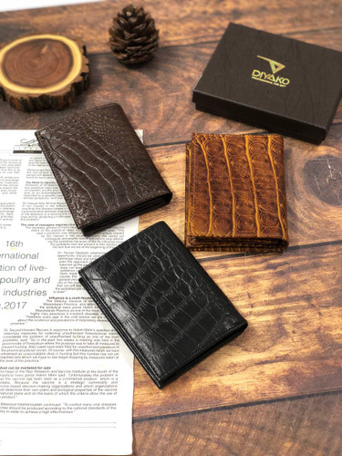 کیف پول مردانه نیم کتی کروکودیلی دیاکو چرم طبیعی
