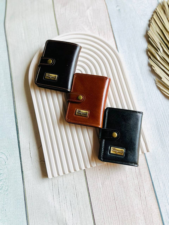 جاکارتی دوبرگ دکمه دارفراگامو✨چرم طبیعی