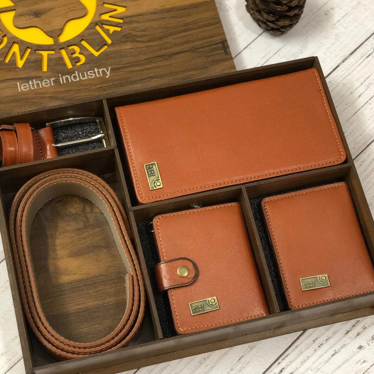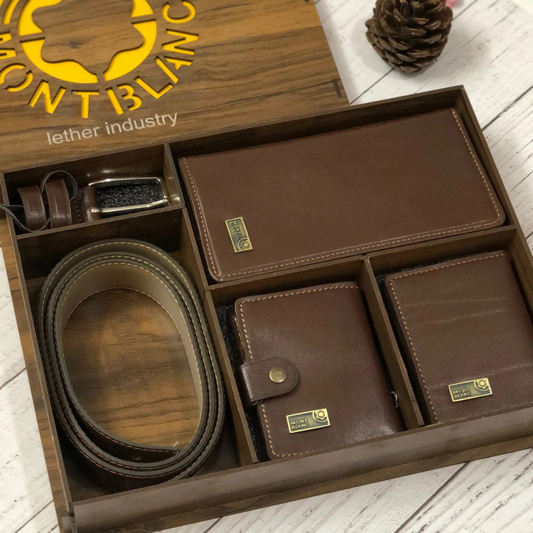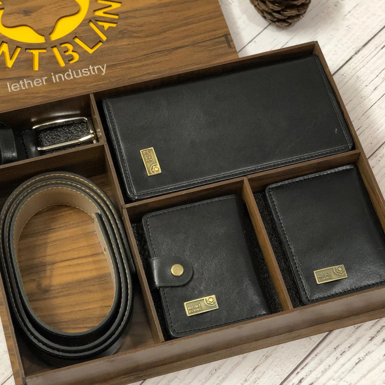 ست کیف پول و کمربند 4 تیکه چرم طبیعی مونت