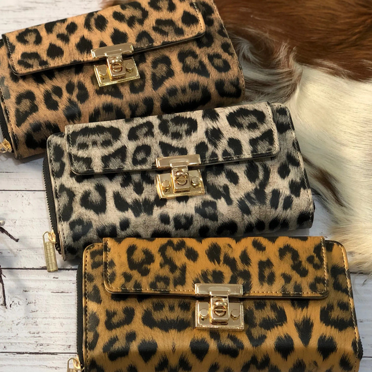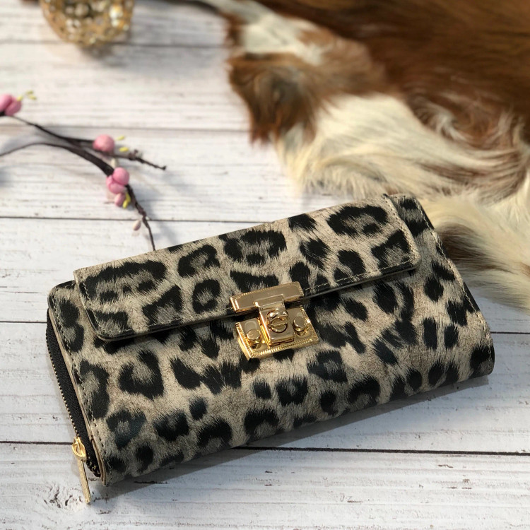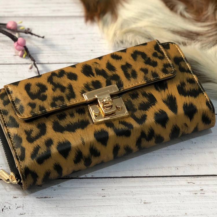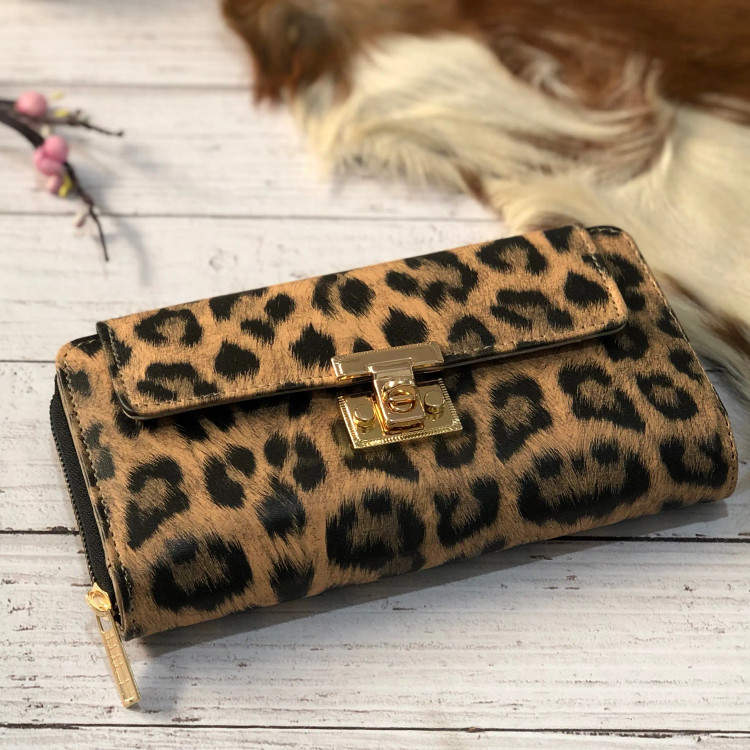 کیف پول زنانه پلنگی پشت زیپ با قفل رادیویی