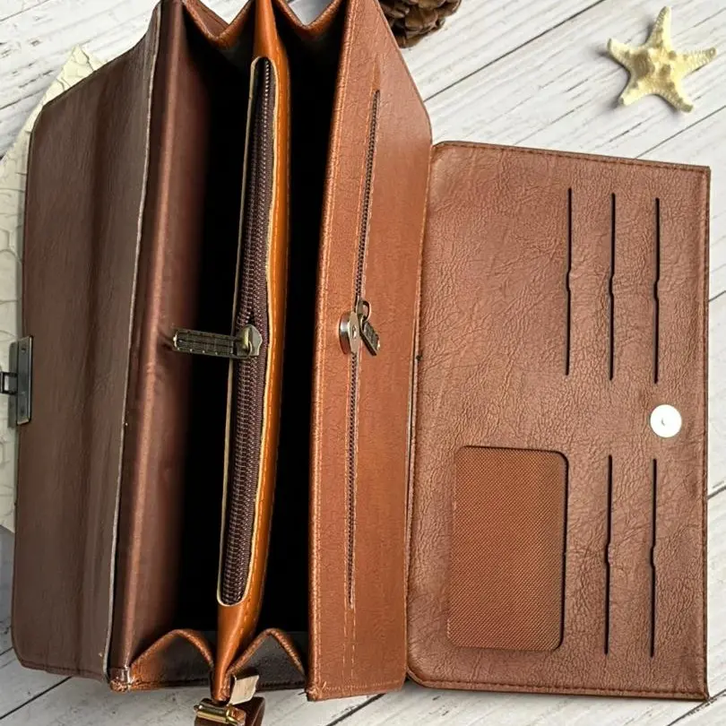 کیف مدارک مردانه قفل دار رمزی جنس چرم مصنوعی اعلا کیفیت دوخت عالی جادار با بند دستی دارای جای کارت جای اسکناس جای کارت و مدارک دسته چک هم به راحتی جا میشه